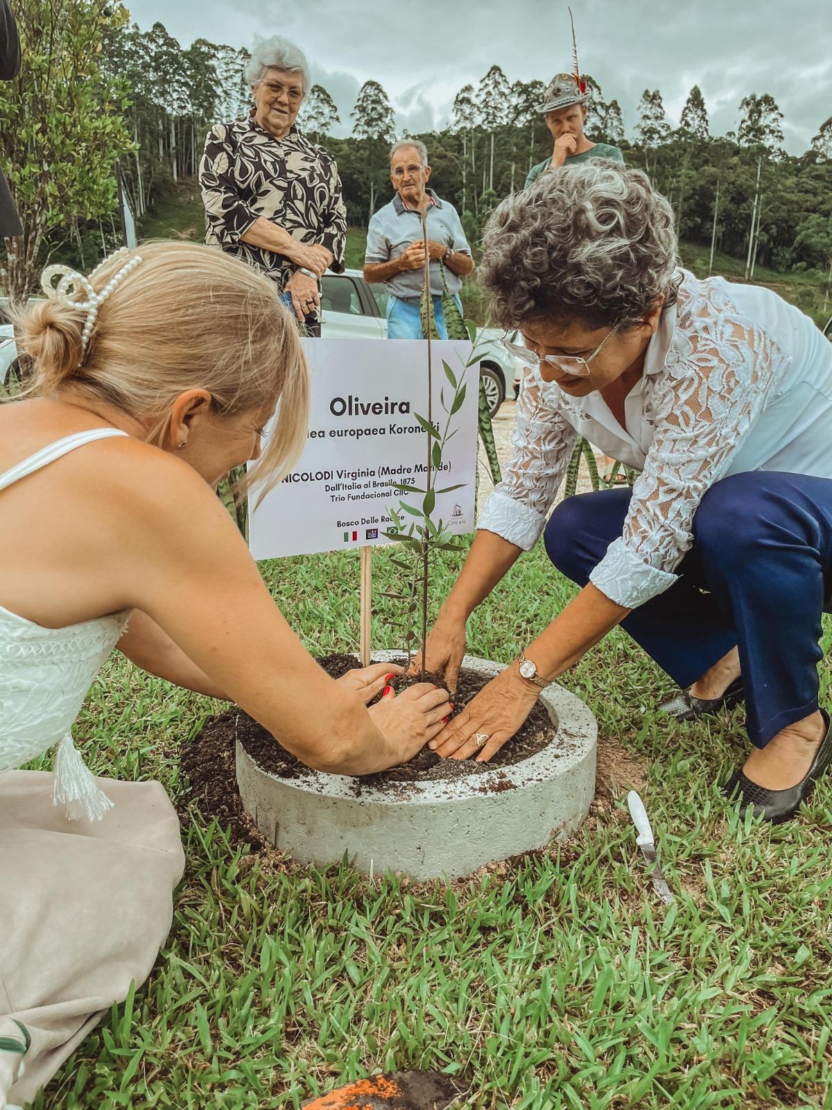 O construção do Bosco delle Radici, já passou por duas etapas anteriores de plantio, primeiramente, em 21 de fevereiro deste ano, data de comemoração dos 150 anos da Imigração Italiana no Brasil, quando foram homenageadas três imigrantes de Nova Trento, Amábile Lucia Visentainer, a Madre Paulina, e as Irmãs Virgínia Nocolodi e Teresa Ana Maulen, fundadoras da congregação das Irmãozinhas da Imaculada Conceição. Neste dia, foram plantadas três mudas de oliveira. "As oliveiras são muito citadas na Bíblia, pois representram força, sobrevivem ao fogo, ao frio e renascem, como o que as Irmãs passaram em sua caminhada. Ela também cresce para o alto, buscando sempre o que está acima, o Senhor, e também é uma árvore que se curva, lembrando a história de Santa Paulina", conta Cipriani.