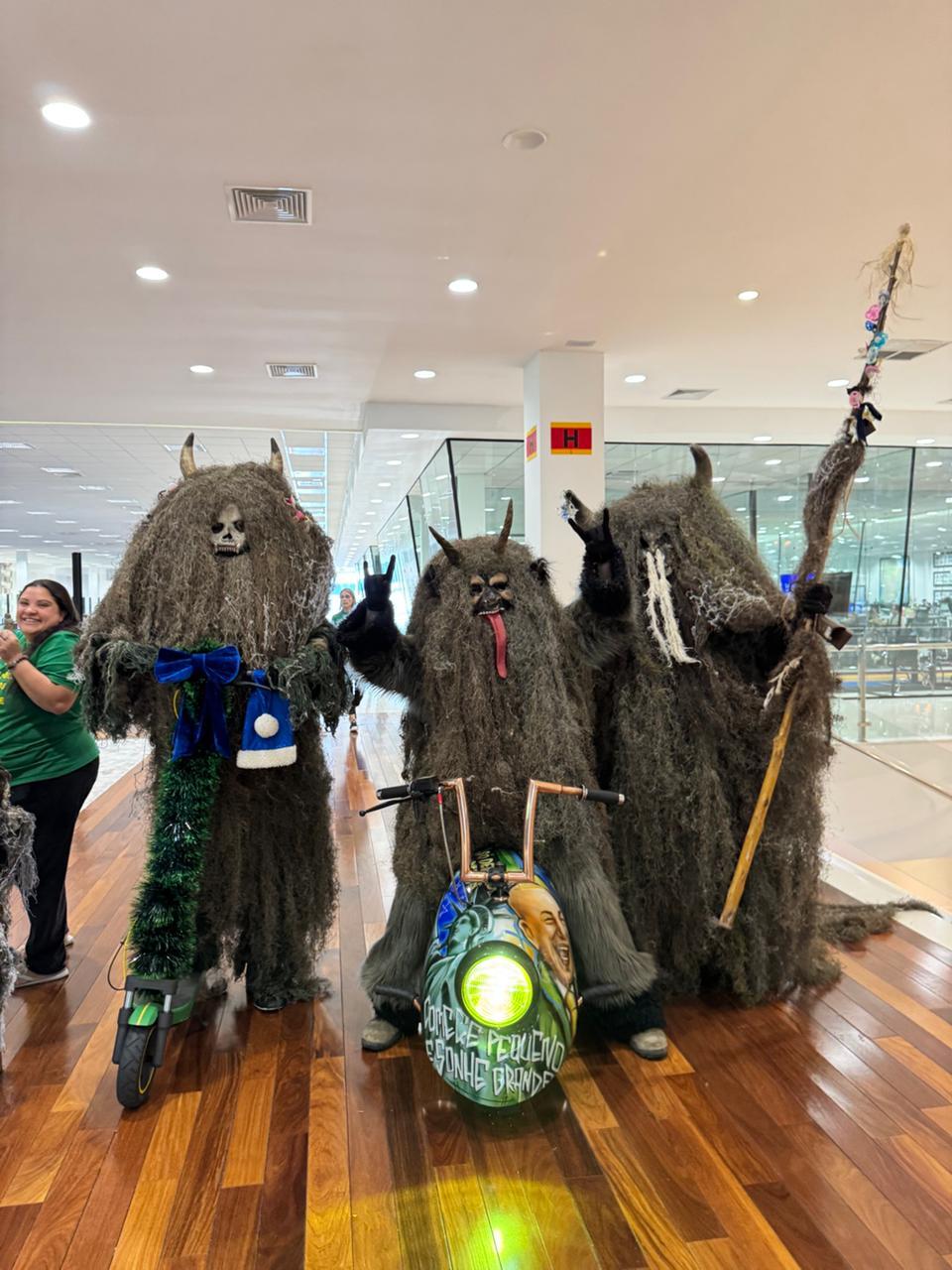 A reação dos colaboradores foi dividida. Muitos entraram na brincadeira, tiraram fotos e aproveitaram a visita. Outros preferiram correr e se esconder nos banheiros, assustados com as figuras vestidas com máscaras, folhas, trapos escuros, correntes e chifres.