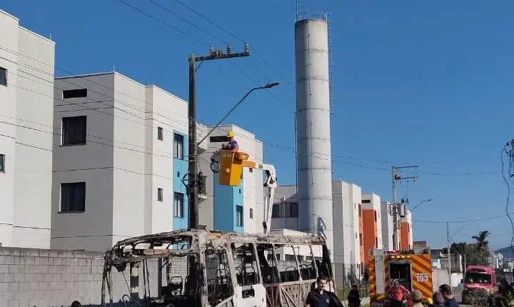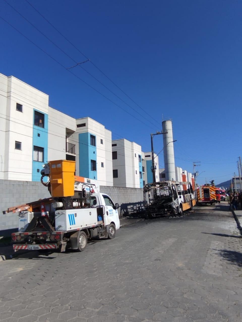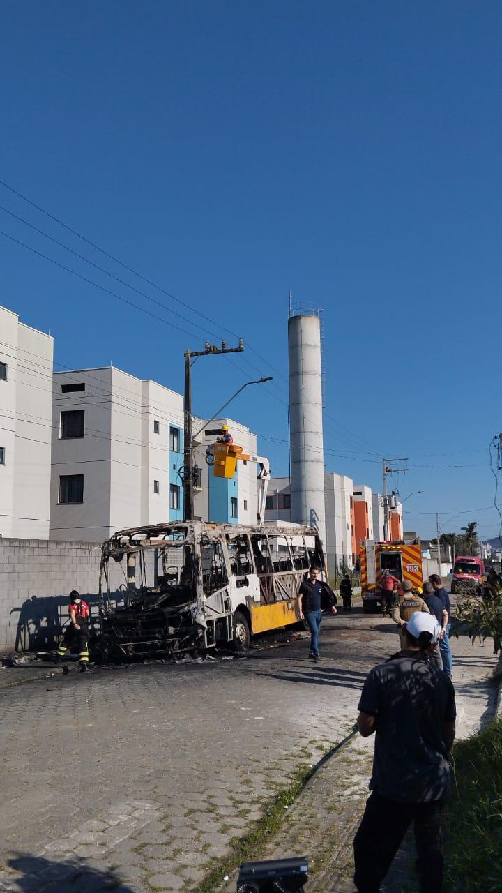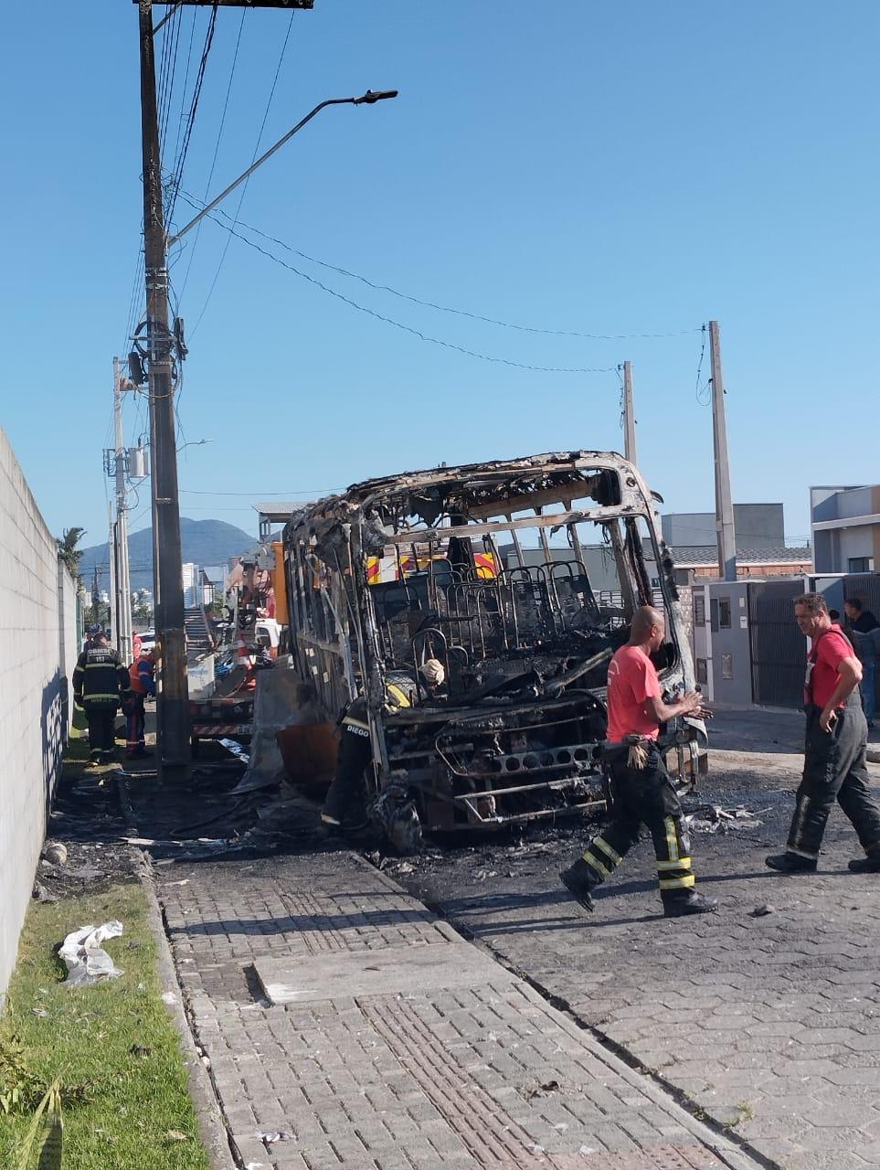 Um ônibus de Transporte Dengo Dengo foi consumido pelas chamas na tarde de segunda-feira (29), em Navegantes. O incêndio aconteceu por volta das 15h, na rua Júlio Madruga de Mendes, no bairro São Paulo.